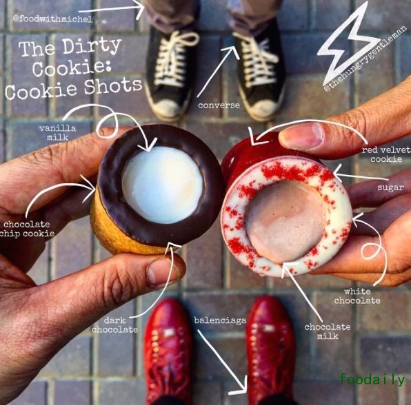 现在,美国加州一个叫 The dirty cookie 的甜品店推出了一款让牛奶和饼干绑定在一起的甜食,还起了一个有趣的名字叫 The Cookie Shot。言外之意就是,你要像喝威士忌一样,仰头干了这一杯食物。