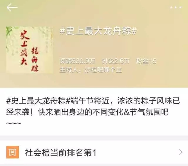 微博话题#史上最大龙舟粽#一度占据社会榜首位