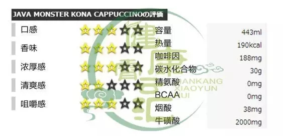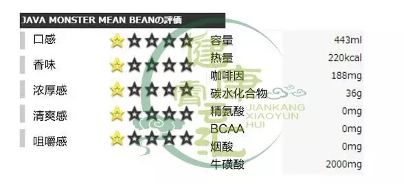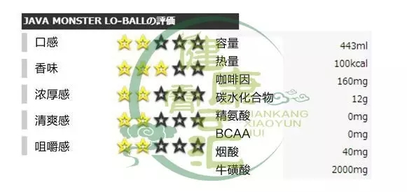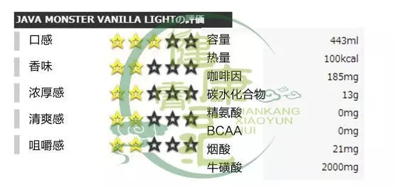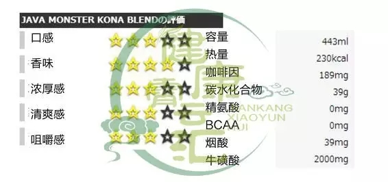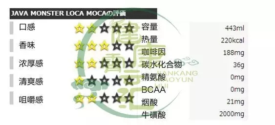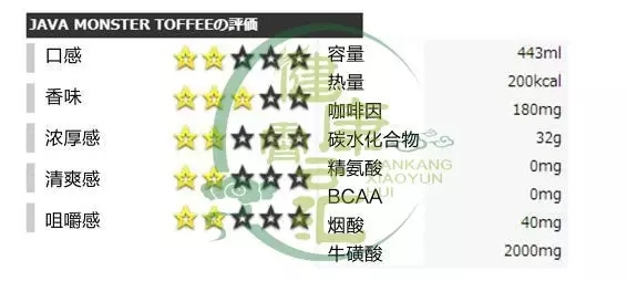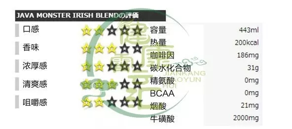 能量成分:咖啡因188mg、牛磺酸1000mg、人参200mg、瓜拉纳与左旋肉碱2500mg