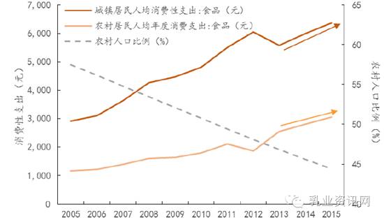 中国城镇居民的消费能力远超农村人口,近年的增长趋势也略快于农村人口。从数据上看,北上广等发达城市的酸奶消费占比远高于乡镇消费者。随着城市化进程的推进,越来越多的农村人口转化成为城镇居民,不断地为酸奶消费支出注入增长动力。
