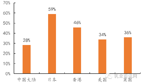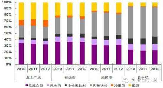 一级城市的酸奶消费占比30%,远高于县乡镇5%的占比
