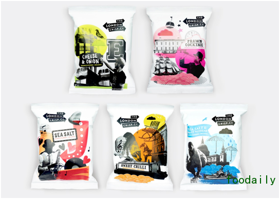 该品牌的薯片系列有Shoreditch-inspired奶酪洋葱,Greenwich-inspired鸡尾酒虾,Soho海盐,Camden甜辣酱,和South Bank-inspired盐醋等口味。