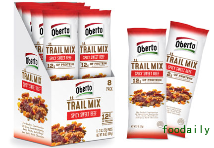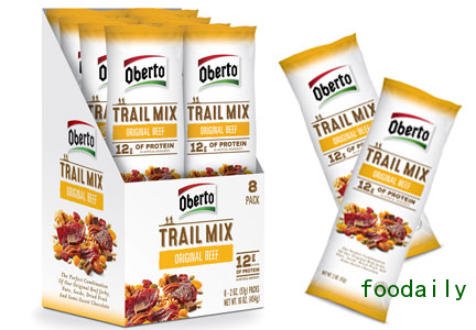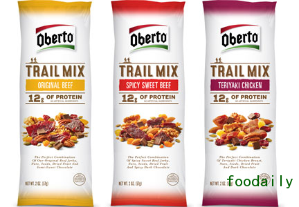 Oberto推出了全新产品——将牛肉或者鸡肉与坚果、果脯和巧克力混合在一起的Oberto什锦杂果,包括原味牛肉、甜辣味牛肉和照烧鸡肉味。该产品在10月18-21日亚特兰大的NACS展览上亮相。