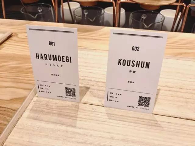 等候冲泡第一泡茶时,店家会先于托盘上立上两款茶品纸牌,除了方便饮用时分辨,也可扫描纸牌上的二维码了解茶叶背后更多的介绍与故事。