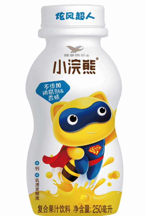 “旋风超人”则采用了“菠萝+橙”,同时添加钙元素,以增强体质、促进骨骼增长。这款瓶身设计采用了时下大热的超人形象元素,以传达体格强壮的因素,也寓意着儿童可以像超人一样茁壮成长。