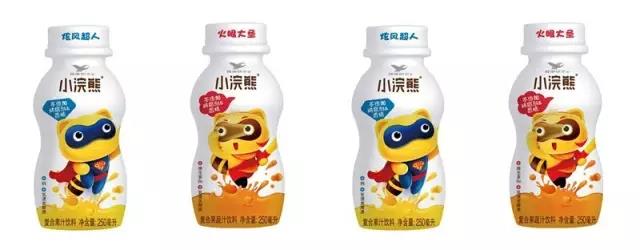 包装方面,针对儿童需求,特别选用小容量瓶型PET250ml,投入新设备设计新模型。企业以“小浣熊”品牌为基础上,为新产品量身定制卡通形象,创造系列浣熊卡通形象。两款卡通形象分别诠释两款果汁不同功能特性,自带流量的大IP卡通形象,吸引儿童和家长购买。