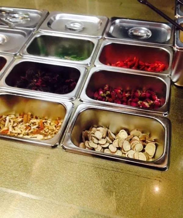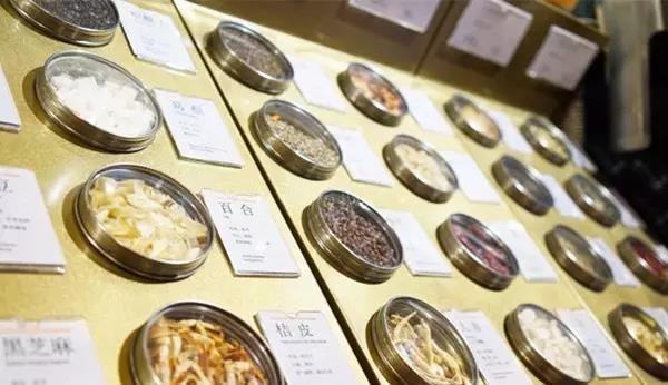 彦悦山打出的slogan是草本功能茶饮,店内设有中药材展示区及茶饮配料展示区,中药材一一标注药材名及药用功效,一来科普,二来也促进了消费者对产品功效及食材安全的信心。