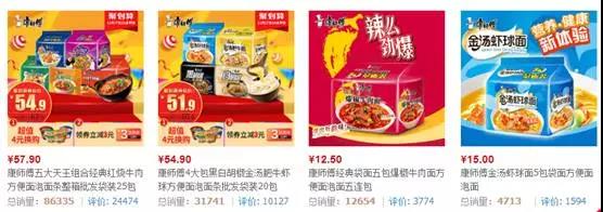 康师傅天猫旗舰店销量最多的产品均价在2.3-2.5元之间,虽然味道多元化了,但从性价比来看,20年前后还是一个样,早被消费升级甩在身后了。