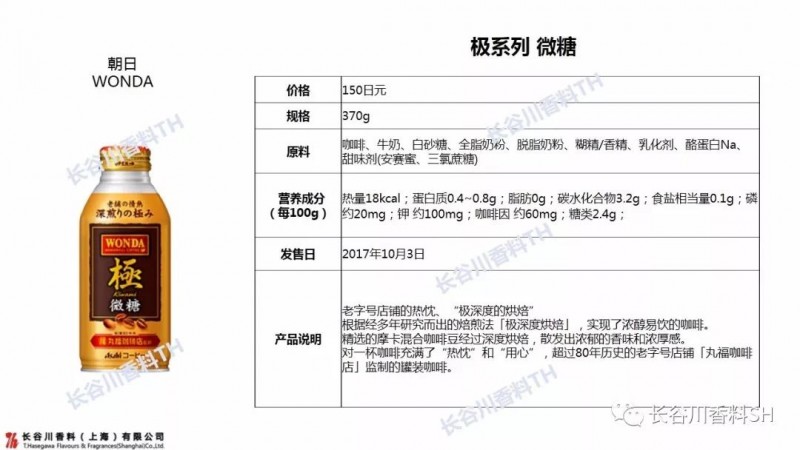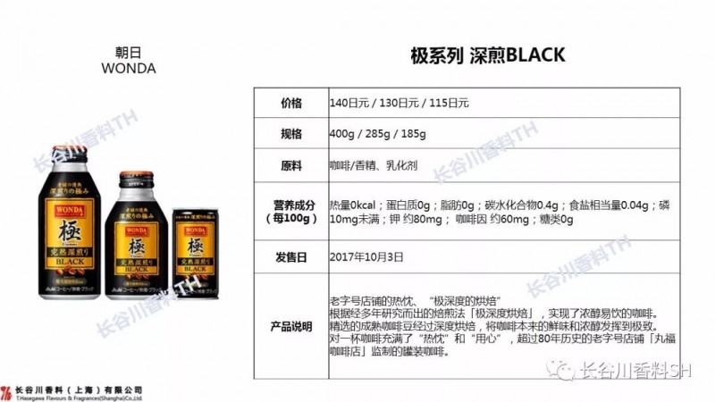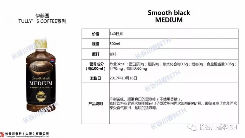 在Boss的PET瓶装咖啡Craft Coffee热卖之后,伊藤园也紧随其后推出了PET瓶装黑咖啡产品。风味上抑制咖啡的苦味,易饮爽口。为了使产品区别化,特别采用了能用微波炉加热的PET瓶型,以适合秋冬季热饮需求。