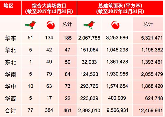已储备78个地点开设综合性大卖场,其中67家在建。