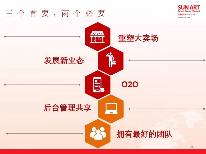 财报提到,面对零售新格局,高鑫零售首要任务是重塑综合性大卖场、探索及部署多业态,并成为拥有O2O及B2B业务的多渠道及多业态的新零售典范。