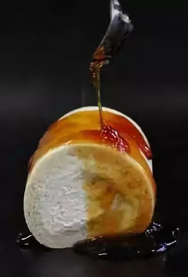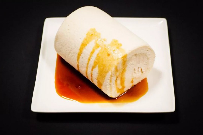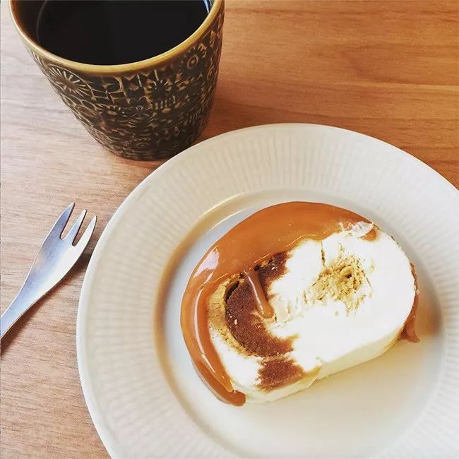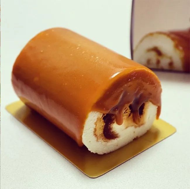 蓬松的海绵蛋糕裹入夹杂着焦糖酱的奶油