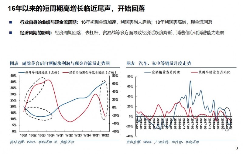 为什么讲风雨中呢?因为其实现在行业有比较大的变化。过去三年(2016年到2018年),食品饮料行业整体是上升的走势,而从今年下半年开始有所回落。