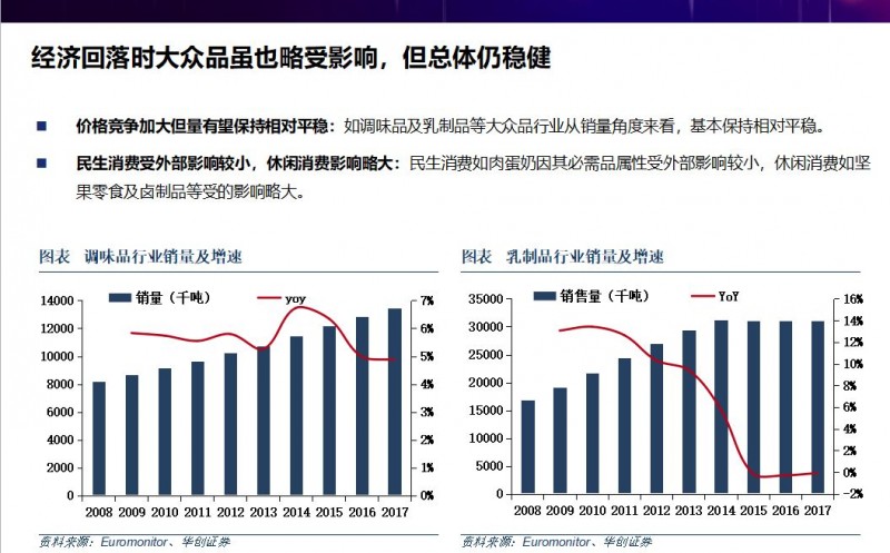 这两年有些行业的增长速度已经明显放缓到个位数了,一些调味品的增量、销量已经到了5%,酱油、乳制品基本上到0左右,去年开始又有所回升。这是需求端的变化,就是收入量的变化。
