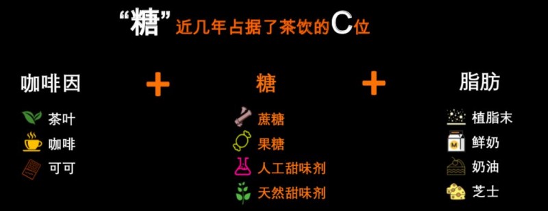 现在有一些甜味剂等等玩搭配,其实早期的奶茶都是一些脂肪的变种,所以为什么我们说上半场靠糖、脂肪、咖啡因可以驱动。