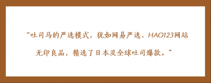 从材料的严选、独家比例的配方到制程上的钻研,吐司马产品呈现的每一步都从日式烘焙理念及技艺中严选而来:抛开多余的调味,大费周章只为了将吐司最根本的美味做最大的呈现。产品少而美,将品牌匠心体现的淋漓尽致。