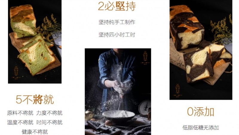 吐司马由一支深入专研日式面包职人多年传承工艺与配方的台湾研发团队精心打造,对于匠心研发、精心制作、悉心挑选及纯手工制作非常有自己的坚持,并衍生了一套“5不将就/2必坚持/0添加“的产品理念。