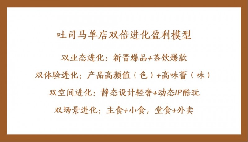 吐司马这套以单店投入产出比为核心的“单店双倍进化”举措,无疑解决了当下餐饮的一大痛点,也让我们看到了吐司马未来更多的可能性。希望筷玩思维对吐司马探店后洞察到的这些“单店双倍进化”逻辑和模型能对您的门店经营有深度启发。