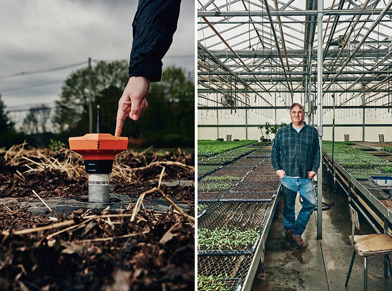 吉姆·沃德把西红柿放在区块链上。迄今为止,Sweetgreen已经在20个农场安装了传感器。