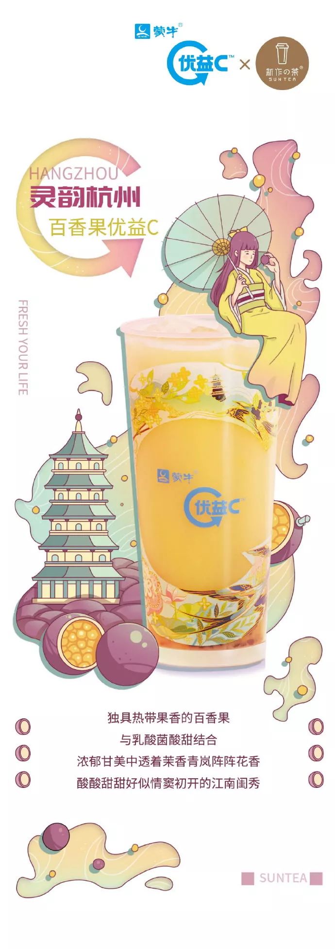 和黄色系的清香百香果优益C形象相结合