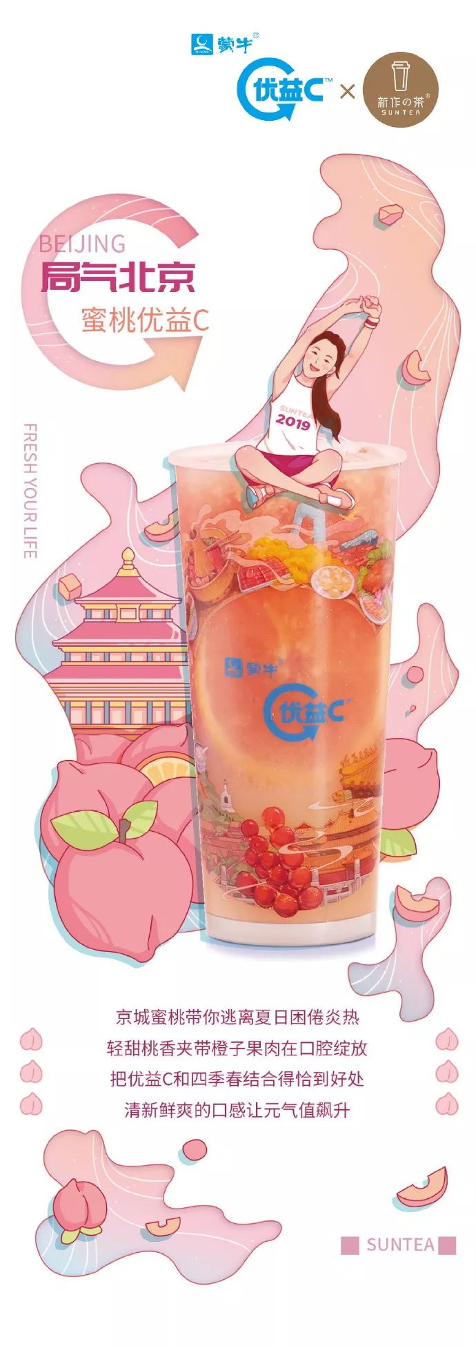 以呼应“蜜桃优益C”产品的形象