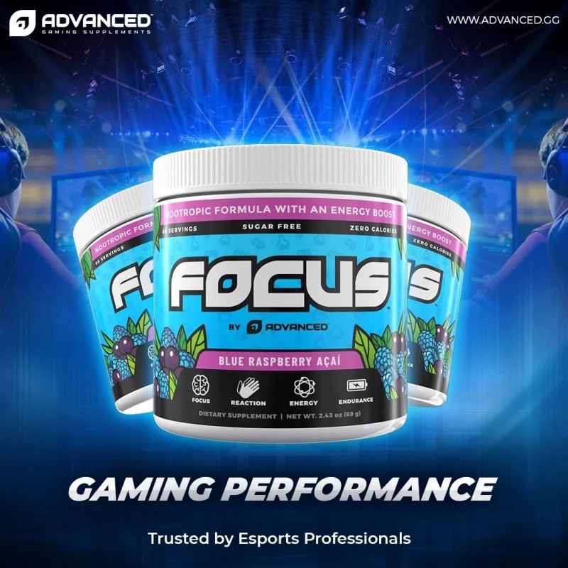 Advanced GG品牌推出的FOCUS™系列也是一款专为电竞选手设计的高端型膳食补充剂,提供完美的能量补充,提高注意力。FOCUS™的高端在于其使用临床证明的益智药来增强注意力、记忆力和反应等认知功能,采用首屈一指的能量复合体。首先,无水咖啡因帮助饮用者初步唤醒,然后,B6和B12维生素开始发挥能量效应,最后,L-茶氨酸以平缓的速度减少。在此过程中,保证不会出现糖崩溃和精神紧张。