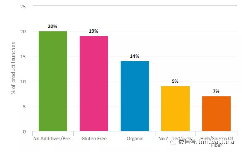 全球范围内2018年,Innova追踪的含超级水果原料的食品饮料产品中,领先的前五位健康宣称分别是无添加剂/防腐剂,无麸质,有机,未添加糖和高纤维/纤维来源。