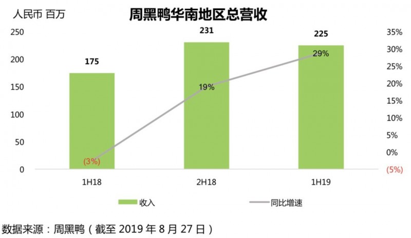 财报数据显示,华南地区已经成为周黑鸭营收增长最快的地区,2019上半年,华南地区总营收达到2.25亿元,同比增长29%,较去年下半年增长19%的基础上再加速。随着“不辣系列”的加入,华南市场的或许能再创佳绩。