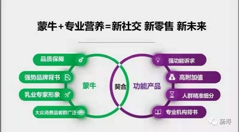 通过品质的保证和强势的品质背书,以及乳业专家的形象,大众消费品客群广泛。那么通过蒙牛这块金字招牌,再加上功能性的产品。那么去诉求强功能,高附加值,人群精准的细分以及专业机构的背书。