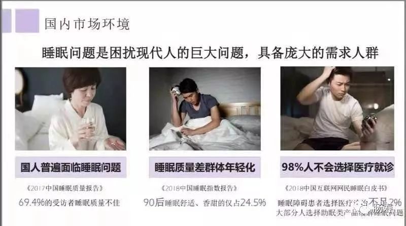 所以呢,综述以上的安眠药,那一定是比褪黑素还要严重,是药三分毒。那么所以呢,助推了国内在助眠,那保健食品市场的急需创新型的。天然安全的产品。