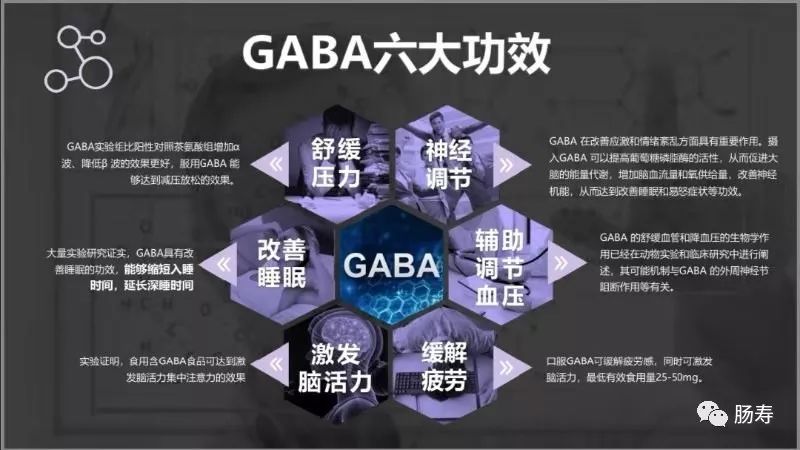 第六大呢是能够缓解疲劳,就是我们口服GABA的饮品,可以缓解疲劳感,同时呢,可以激发脑部活力。