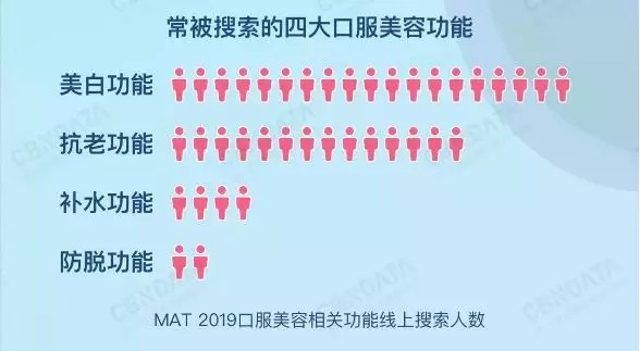 口服美容作为介于普通护肤和专业医美之间的新方式,顺应了国内消费者以内养外的传统观念,让消费者通过内服就能体验美容护肤。天猫国际与天猫超级品类日联合第一财经商业数据中心(CBNData)发布《2019口服美容消费趋势报告》 “美白、抗老、补水、防脱”是线上口服美容消费者的四大关键词。