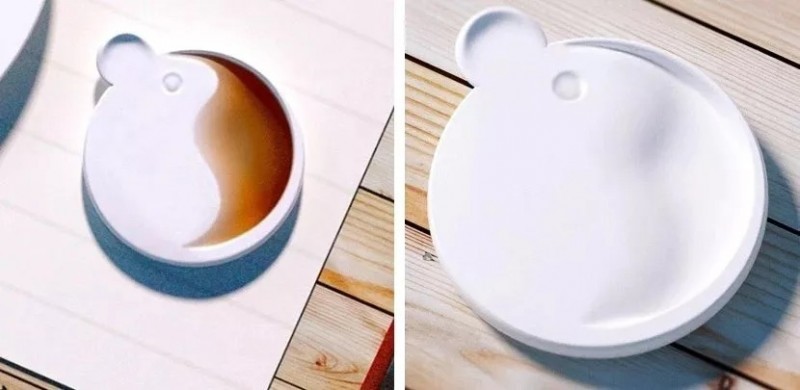 礼盒的组合套装上,配上了一对别具巧思的酱油碟,当酱油倒入,一只老鼠的形象便会慢慢浮现。