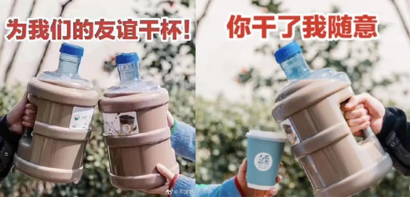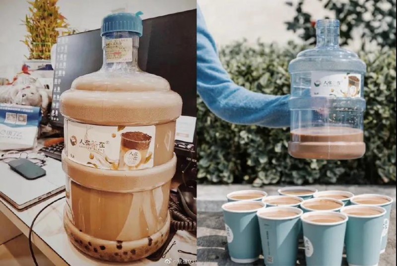 肯定很多人好奇,这5升豪横奶茶到底是怎么火起来的?其实网上类似的创意不少,爱情公寓5里,也出现过这样的 “网红奶茶桶”,其它地方像台湾、马来西亚的奶茶店已经尝试过这样的包装了。
