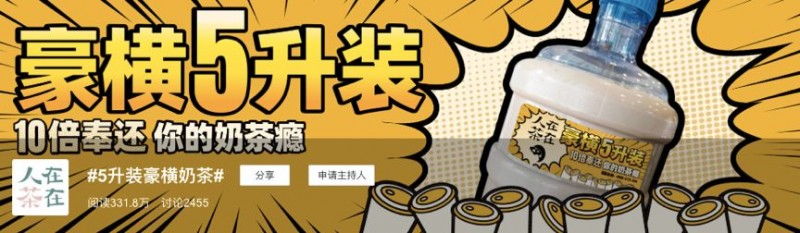 这一波三折下来,截至目前,#5升装豪横奶茶#微博话题阅读量突破了300多万,各个平台的KOL也纷纷以“魔都最豪横”的奶茶做文章,大家记住了豪横奶茶,也记住了人在茶在。