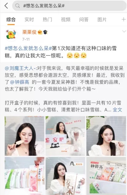 配合此次发呆包新品组合,官方微博搭配视频发起话题#想怎么发就怎么呆#,联合KOL,激发用户一起解锁发呆态度,达到和用户共创内容,自发传播新品活动的营销效果。