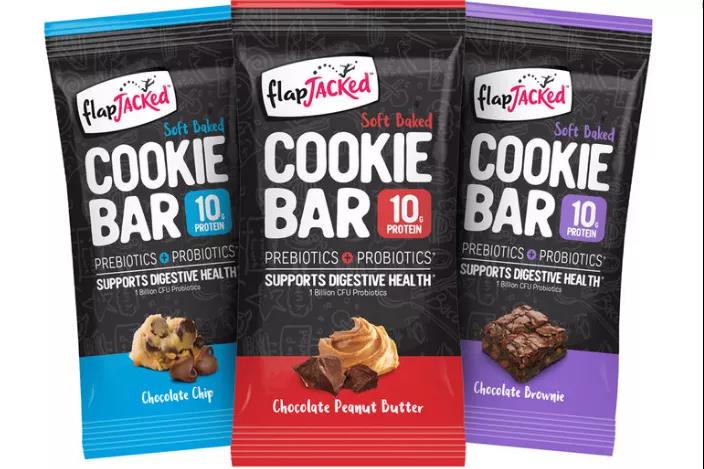 Flapjacked“肠道健康支持”曲奇棒,每份添加益生元、10亿CFUs益生菌和10克蛋白质的,有巧克力碎片、巧克力花生酱和巧克力布朗尼3种口味。益生元+益生菌的配方,能更好地维持肠道益生菌组。