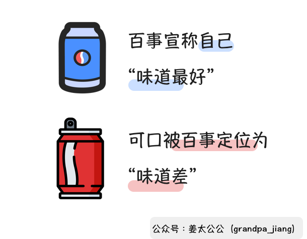 当百事宣称自己是“口味最好”时,就是给可口可乐按上了“难喝”的定位……