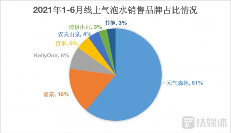 而正在可口可乐、农夫山泉等软饮巨头,与元气森林打得打得不可开交时,新茶饮独角兽「喜茶」旗下的瓶装饮料,已在不知不觉中崛起,并紧随元气森林,拿下了今年上半年线上气泡水销售市场16%的份额。
