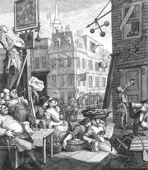 1751 年威廉·霍加斯 (William Hogarth) 的啤酒街,
