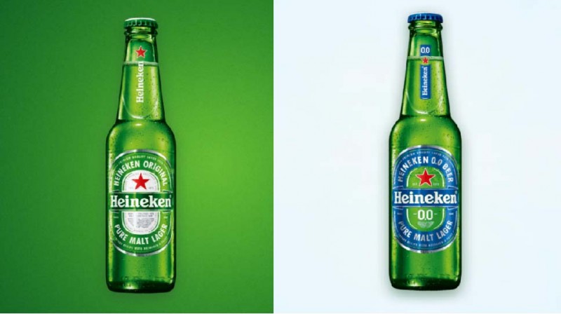 左图为Heineken Original(绿色标签),右图为Heineken 0.0(蓝色标签),图片来源:Heineken