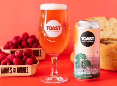 Toast Raspberry Sour Beer是一款带有覆盆子香气的0.5% vol啤酒,用剩余闲置的新鲜面包来代替所需原料中三分之一的麦芽大麦。口感酸爽,可作为夏季完美的提神酒饮。