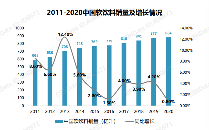 根据益普索《2021年茶植咖-三大饮料品类分析》报告显示,中国软饮料市场近十年持续稳定增长,无糖化的茶饮正成为趋势。