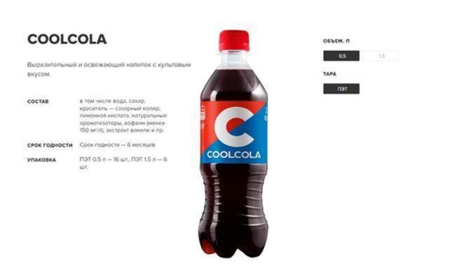 Ochakovo在官网写道,CoolCola有着 “可乐的标志性味道”。