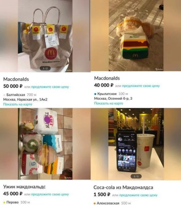 有人在俄罗斯二手交易网站Avito上,出售二手汉堡,要价非常之高 ……