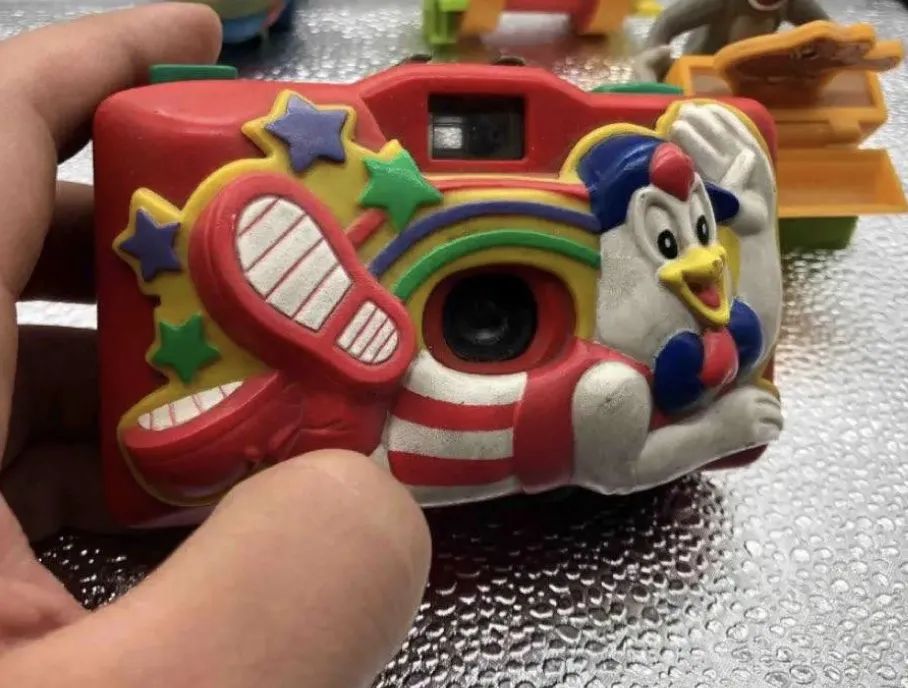 同年还有一款奇奇主题的胶卷相机,虽然是附赠的“塑料玩具”,20多年前的做工相当别致,机身做了磨砂处理,甚至可以安装闪光灯。当时相机还是个新鲜玩意,肯德基这款玩具一度成为小孩的摄影启蒙。吃肯德基送主题相机,就算放在今天我都开始心动了。