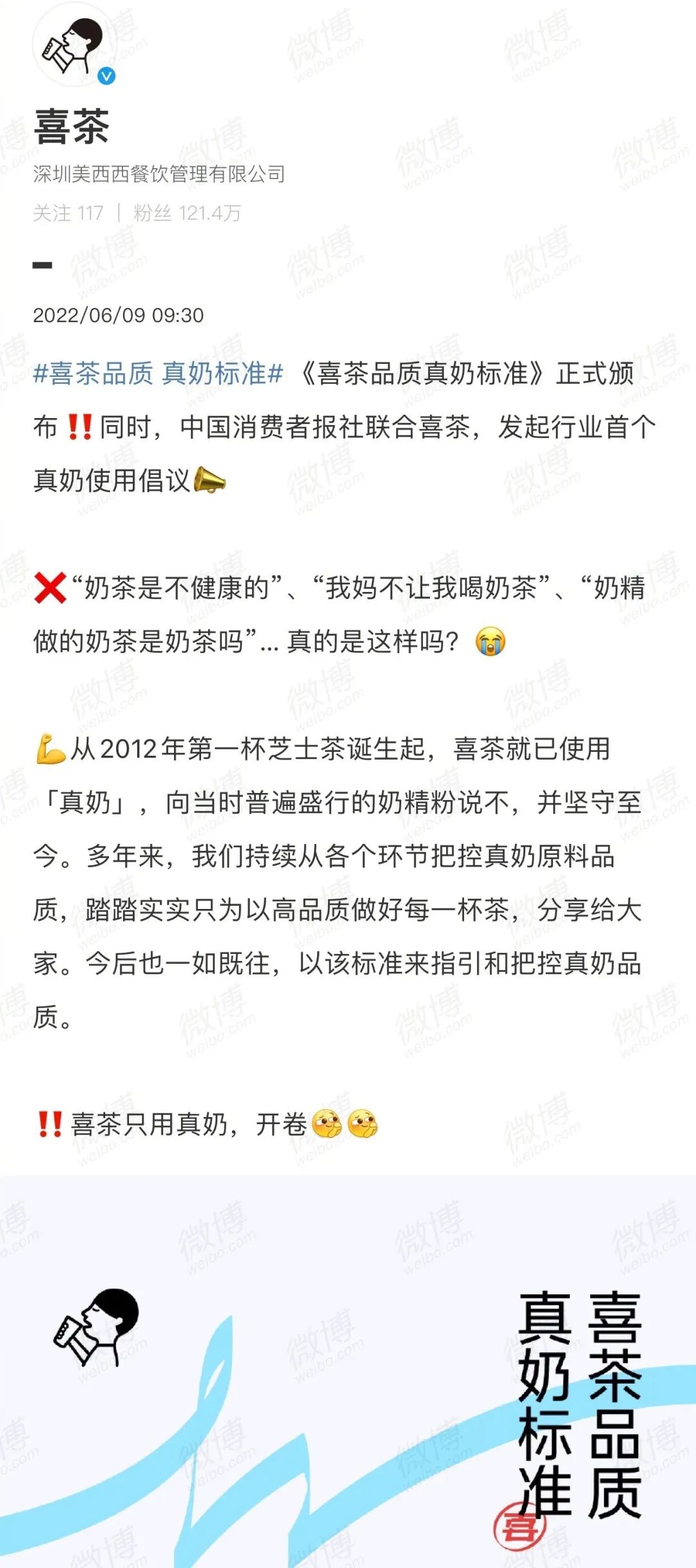 喜茶可以为了宣传“原料货真价实”发布行业标准怼对手!6月9日正值中国第25个全国乳品营养周,彼时喜茶发布了一份《喜茶品质真奶标准》。
