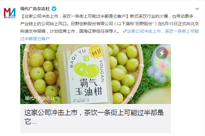 作为出了名“内卷”的新茶饮,可以预见的是,在这个夏日的交锋只会更火热。前有蜜雪冰城“黑化”出圈,还在海外开店1000家;后有喜茶“扬言”跨界《梦华录》造声势。田野创新股份有限公司正式向北交所递交了审报稿,正式开启IPO!