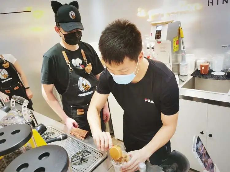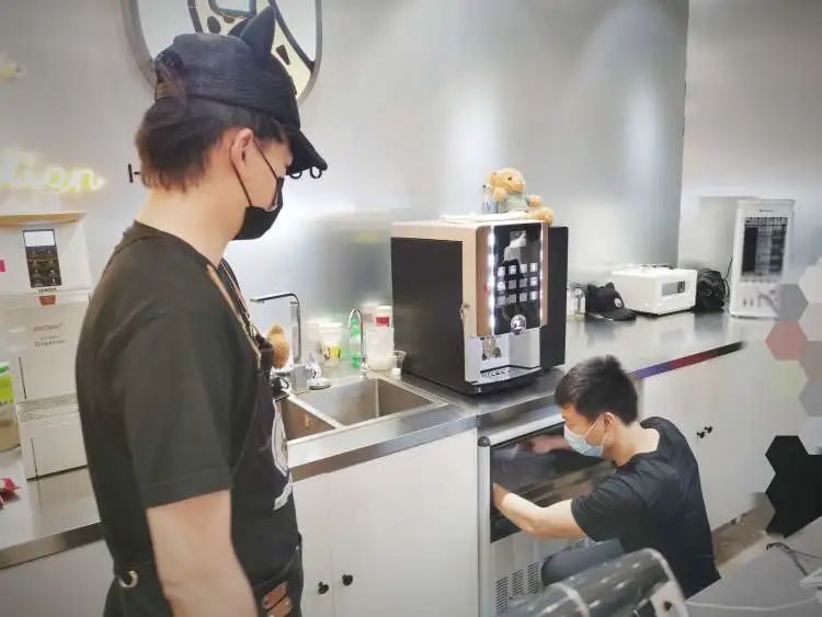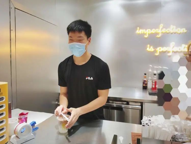 当然了,天保要做的肯定不会只有“按键”这一件事,他需要及时为咖啡机添加咖啡豆,需要定时清理咖啡机,需要为咖啡杯盖上盖子、配上吸管,也需要和顾客面对面交流、沟通。