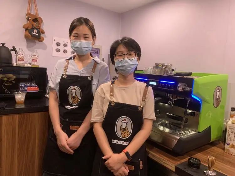 小小的一家咖啡店,一般就是这样两位咖啡师在背后忙忙碌碌,靠翻译软件和“比划”沟通。